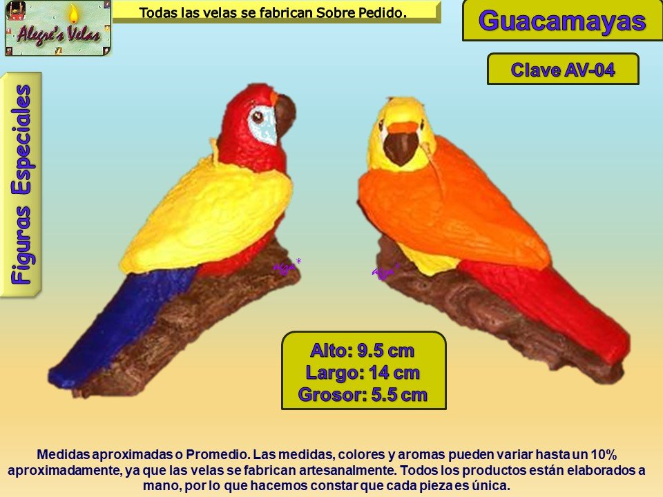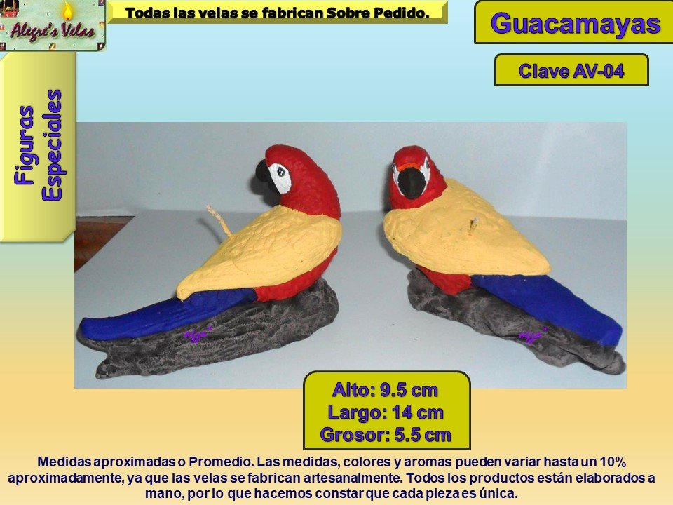 En esta muestra fotográfica podrá encontrar velas en forma de diferentes Aves.