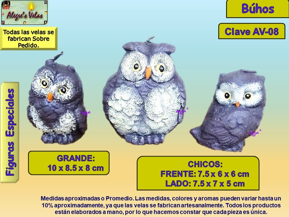 AV-08 | Búhos Chicos | a) 6.5 x 9 cm c) 7 x 8 cm |