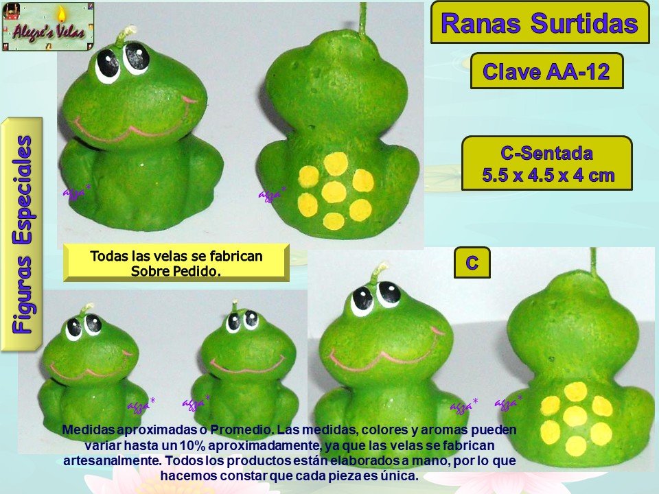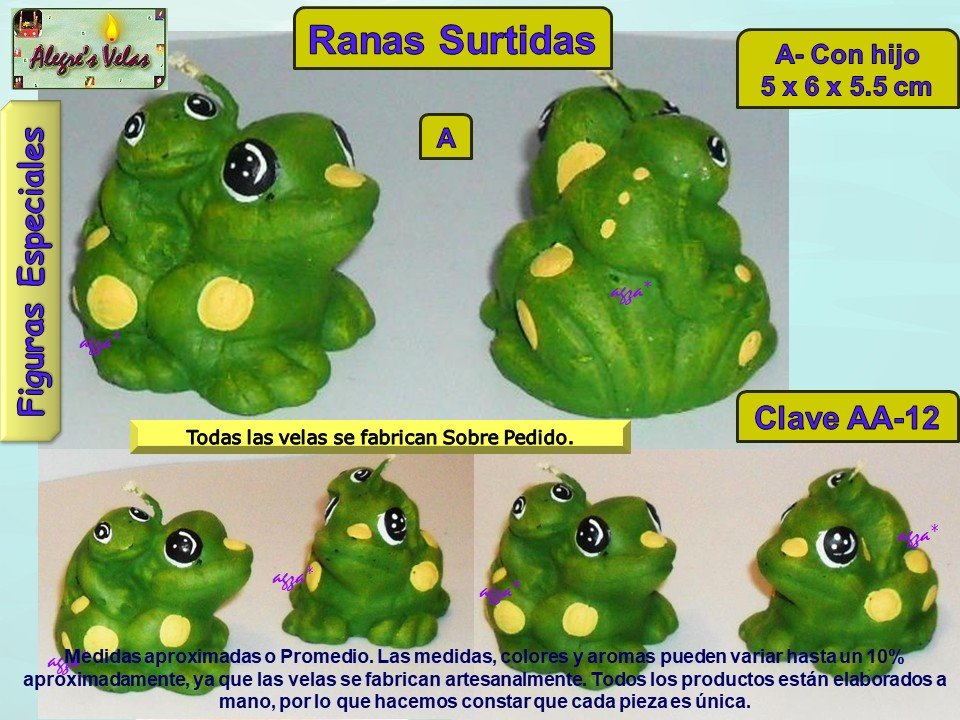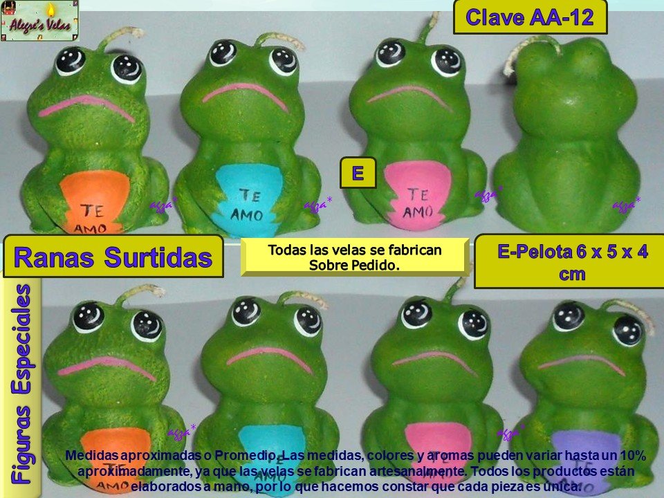 Velas en Forma de Animales: Ranas, Iguanas, Tortugas, y otros.